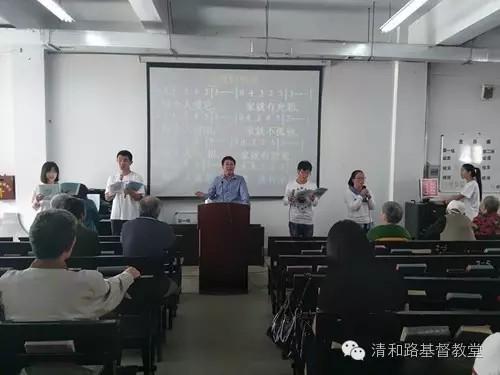 活动由王涛弟兄主持,8:30-9:00为一个半小时的赞美敬拜,唱过《爱,我愿意》《向耶和华唱新歌》《全然向你》等赞美诗歌之后,沈光明牧师引用【创】2:18、【创】21-24、【弗】5:22-25、【弗】5:28-33的经文与众弟兄姊妹分享了《幸福的家庭》。