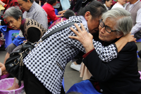 整个过程中,参与洗脚与被洗的人紧紧相拥在一起,纷纷留下感恩的热泪。谦卑礼结束后,教会为每一个接受仪式的老人送上长寿面,整个活动在安静、祥和、感恩的氛围中结束。