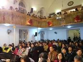 南岗教会青年团契10月21日微信消息,近日哈尔滨市基督教南岗礼拜堂青年团契举行感恩音乐崇拜会。卢哲教师证道“凡事谢恩”,引用经文为帖撒罗尼迦前书5章18节。青年诗班唱诗《耶和华是我牧者》、《靠主恩典》,青年团契献上《野地的花》、《感谢神》、《你的恩典够我用的》、《医治的爱》等八个歌舞敬拜节目。