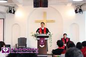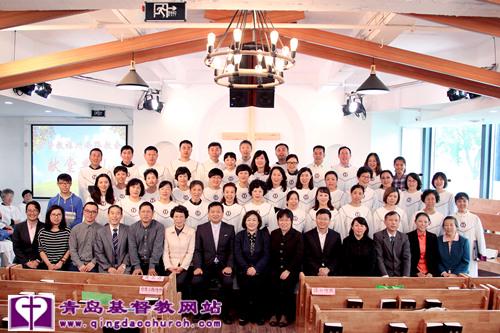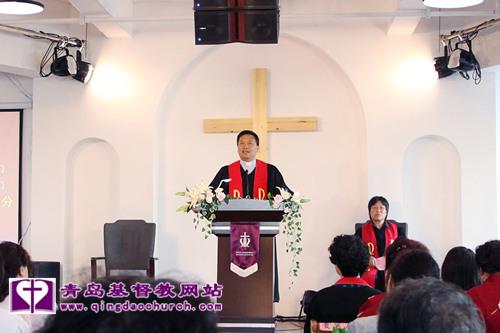 赵开洁牧师以《使神的殿荣上加荣的本分》为题证道,与弟兄姊妹分享。此后市南区各堂点诗班分别献诗,最后众人齐唱《教会我所爱歌》,献堂典礼在沈光明牧师的祷告和张霞牧师的祝福中结束。