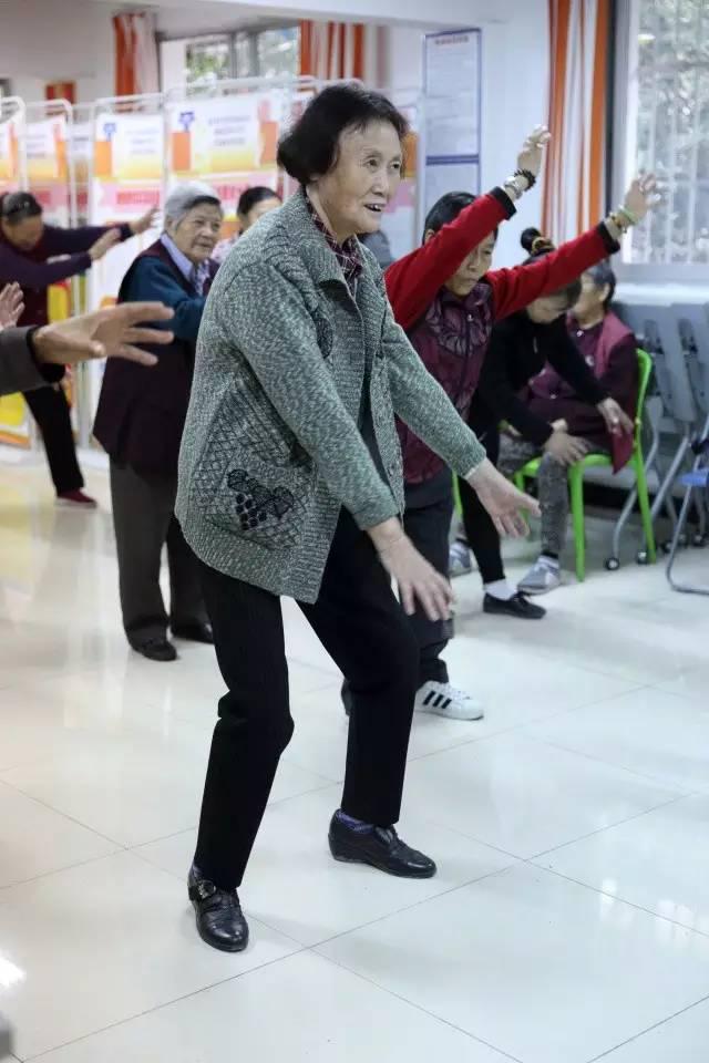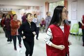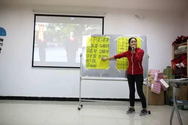 活动主持人先带领复习了关节保健操,之后开始学习“回春运动保健操”。主持人先让老人们跟着专家视频讲解和示范大体学习了一遍,接下来主持人分节对每节动作进行讲解,义工也帮助老人纠正姿势。