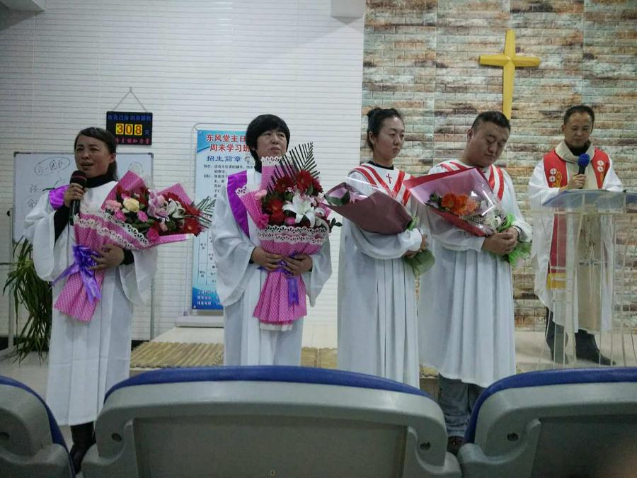 2016年11月4日,吉林省辽源市东丰县基督教东风堂为加入诗班的四位同工举行了奉献礼。四位加入诗班的同工也分别做了发言,有的还流下了泪水。