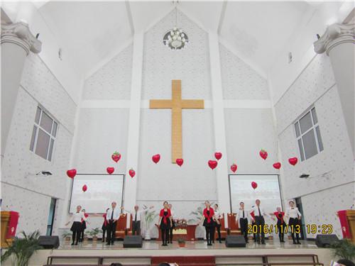 据东风堂网站消息,当晚6点半,感恩联谊会在东风堂正堂拉开帷幕,田才弟兄和刘翠姊妹主持,林营旭教等带领会前赞美。