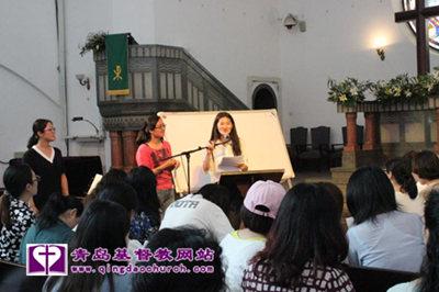 英语口语兴趣班于7月2日下午正式开课。来自青岛市各堂、点的青年信徒共60人在江苏路基督教堂一起学习。课程由曾召娟传道和张天虹姊妹一起搭配服侍,德国朋友白龙、Momme做外教。课程内容形式多样,既有经文学习、诗歌诵唱,又有游戏、舞蹈及小组活动。培训班还通过微信建立了英语学习群。