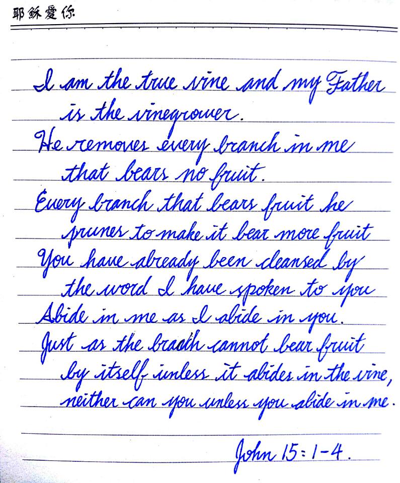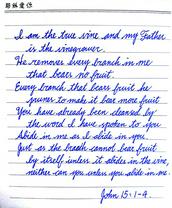 1、参赛形式:手抄您所喜爱的一段圣经经文,硬笔、毛笔、铅笔等均可。手抄经文后须注明所抄经文的章节,抄写者的姓名或网名,抄写日期。