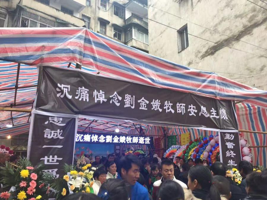 12月21日上午,湖北省通城县基督教三自爱国会主席、福音堂主任牧师刘金娥追思礼拜于该县隽水镇金泉路通用机械宿舍院内举行。