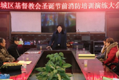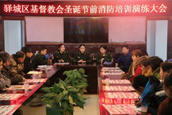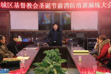 2016年12月21日上午9:00,驻马店市驿城区基督教两会在天中堂四楼会议中心,举办驿城区基督教两会圣诞节消防安全培训和大演练的活动。全区32个堂点90多位各间教会领袖和教牧同工及天中堂托老院所有服侍人员、后勤人员一同参加了此次培训活动。驻马店市驿城区区委统战部副部长、区民族宗教局吴保平局长在电话中关怀指导。