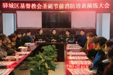 驻马店市驿城区基督教两会主席会长白建德牧师首先听取了全区32个堂点教会领袖针对平安夜、圣诞节举行大型活动的消防应急预案和相关措施的汇报,借鹿邑县天主堂圣台起火,把整个教堂全部烧毁这一血的教训,警戒全区各教会堂点,必须强化消防安全意识,确保全区基督教会各堂点消防安全,确保各堂点消防安全万无一失!随后驿城区公安消防大队的王磊警官和袁琳警官,结合专业消防知识及丰富实战经验,手把手地传授遇到火情时初期火灾的扑救方法和注意事项,面对面地指导教牧同工如何使用灭火器材。