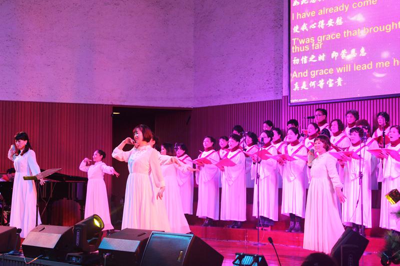 崇拜结束,诗班献唱了赞美诗《马槽耶稣》《圣城颂》和《耶稣!明亮晨星》;工商团契信徒献上赞美诗《恩典的记号》和《亲眼看见你》,感恩走过的路,有欢笑和泪水,但都留下了主恩典的记号。