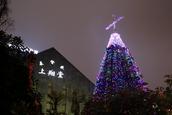 平安夜,雾霭蒙蒙的成都市飘起了小雨,顺城大街人流穿梭,上翔堂广场外的圣诞树上霓虹闪烁。教会同工们站成一排,向进入教堂的人分发程序单。单页以粉色调为主,其中一页上写着“耶稣基督,道成肉身”,旁边是一个黄色的十字架。中间是一幅圣婴降生图,一切显得宁静安详,而马槽的简陋又显示出救世主的谦卑虚己。