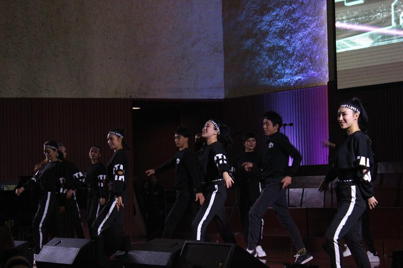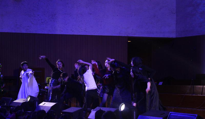 舞蹈团契则用歌伴舞来赞美神,曲目包括《今天是个好日子》《感谢》等。青年团契的歌伴舞有《苏醒》《哈利路亚》。作为感人的是以《Everything》为背景音乐的音乐剧,展现了神起初造人、人堕落和神救赎人的整个过程,虽然看过多次,但仍让人心里一震。