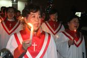 音乐崇拜开始,诗班成员手擒蜡烛,在黑暗中列队入场。崇拜由范正文牧师主领,郭琪传道读宣召经文,白荣发牧师祷告,朱于惠牧师引用《路加福音》2章8-14节的经文,以《天上荣耀,地上平安》为题证道。她分享,耶稣基督的降生,让天地连接,我们能蒙神喜悦,重要的是有信心,相信有一位神的存在。没有接受主的人,当打开心接纳他;已经认识神的人,要过“在地如在天”的生活,用行动见证我们的信仰。