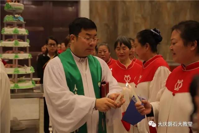 12月26日,大庆市磐石大教堂七点开始圣诞节感恩献祭活动,教堂内响起赞美的歌声。金菊牧师勉励演出人员献上感谢的祭、甘心的祭、奉献的祭。歌舞、快板、朗诵,献祭演出精彩纷呈。刘洋牧师带领同工献唱《普天同庆》、《这条路上我们一起走》、《我们的使命》等三首诗歌,表达了众同工对主的感恩,甘心奉献乐意为主所使用的心。
