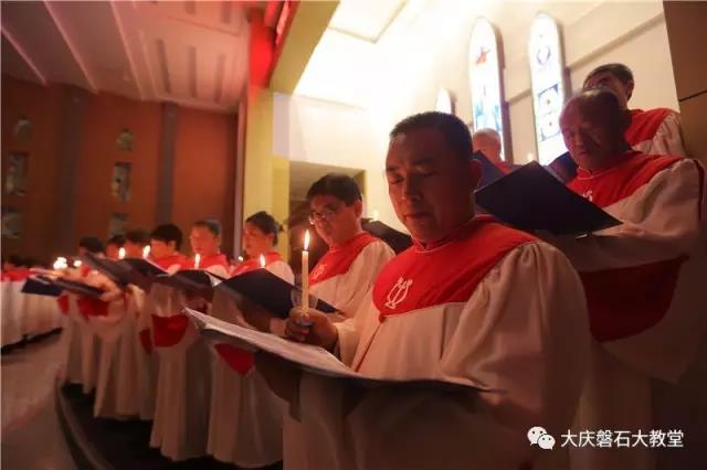 “欢乐圣诞佳音大家来歌唱,耶路撒冷欢呼弥赛亚为王!”12月24日上午,伴随着耳熟能详的赞美诗,大庆市磐石大教堂2016年喜迎圣诞大合唱献祭拉开了序幕。