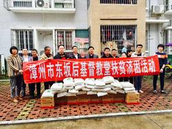 漳州市基督教两会主席会长、东坂后基督教堂庄静城牧师介绍,惠民小区共有420户低保户,120户特困家庭,此次活动,教会为30户贫困家庭送去大米和油以及慰问金,芝山镇民警陈云城警官,居委会陶恒奎主任等人一起参加了本地活动。