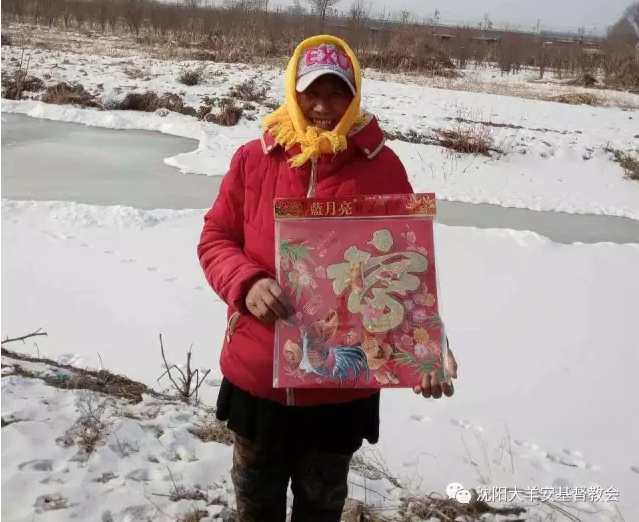 大羊安教会在微信上分享了近50张得到福字的人的照片,其中有贫困的老人,有大人带着孩子,还有在屋外的雪地上……人不同,场景不同,相同的是大多数人手捧福字露出了笑容。