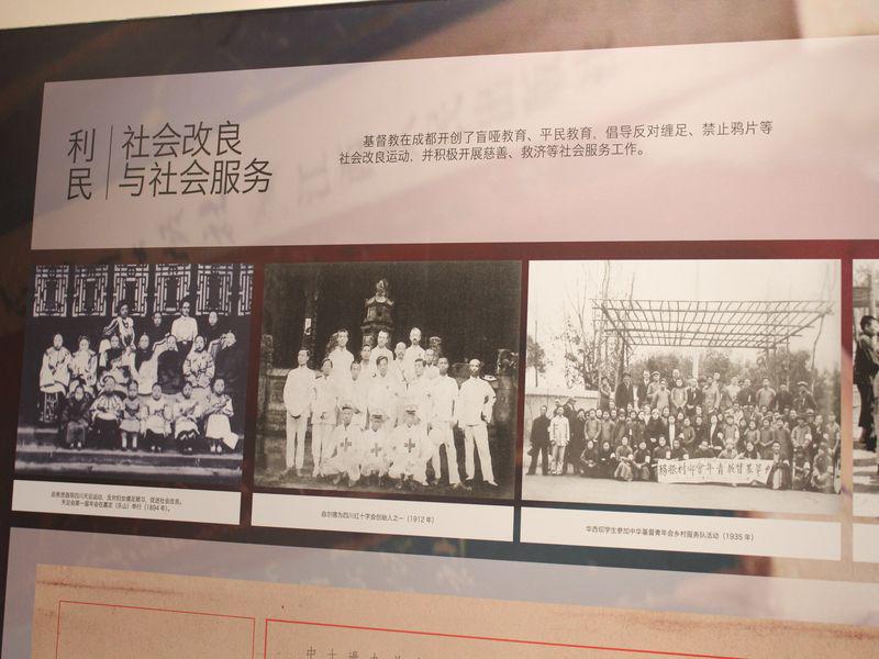 成都市基督教陈列馆已于2016年12月20日正式开馆,共分五大展区,分别是源远——福音文化”、“开基——莅我西蜀”、“恩德——施与受”、“正本——信爱”、“永续——根在成都”,采用图文并茂的形式,对基督教历史文化和教会发展进行展现。