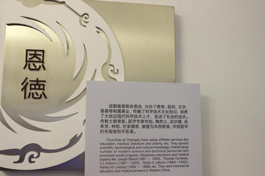 在“恩德——施与受”部分,展出了当时成都基督教各教会兴办的教育、医药、文字、慈善等附属事业,传播了科学技术文化知识,培养了大批近代科学技术人才,促进了社会的进步。传教士教育家、医学专家毕启、陶然士、启尔德、启希贤、林则、甘来德等,被誉为华西教育、华西医学的先驱者和开拓者。