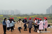 在活动开始前,义工主领教大家围成一圈跳起了彝族的“索玛花之舞”。在放风筝时,有的义工给予爷爷奶奶们帮助,有的负责维持现场的秩序,还有的负责拍照。放完了风筝,大家坐着边吃零食边聊天。