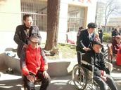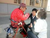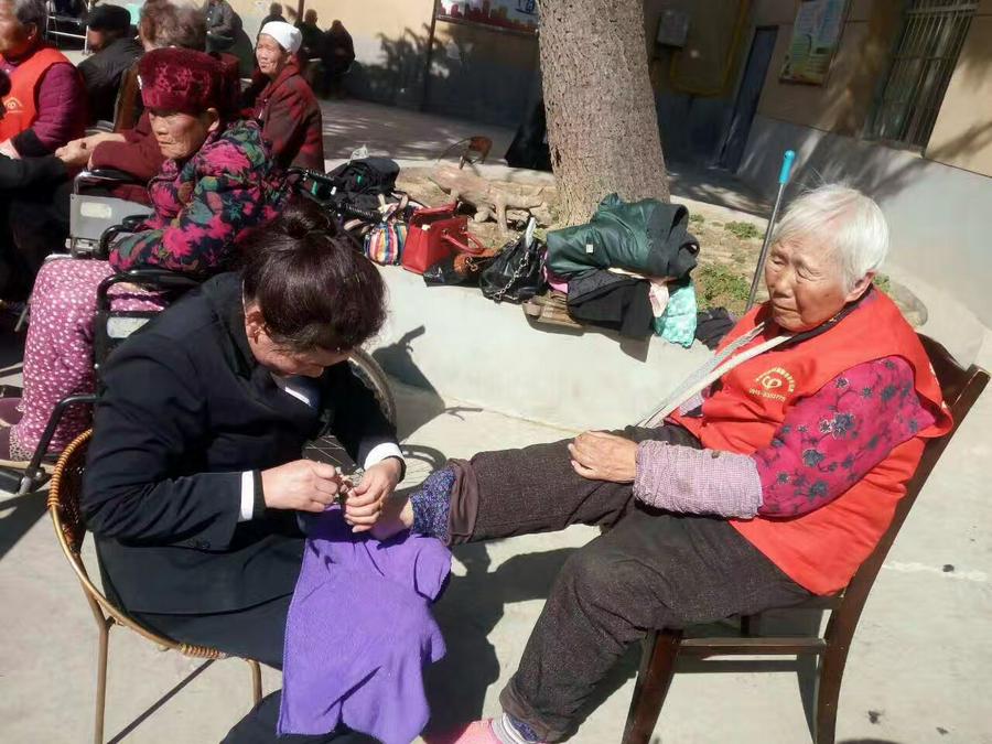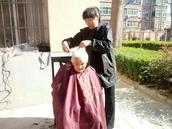 4位专业的理发师分成两组服侍,一组在1楼,一组在2楼;懂按摩技术的弟兄帮助老人按摩肩部、背部、腿、脚;姊妹们帮助老人剪指甲,到3楼陪不方便下楼的老人聊天。