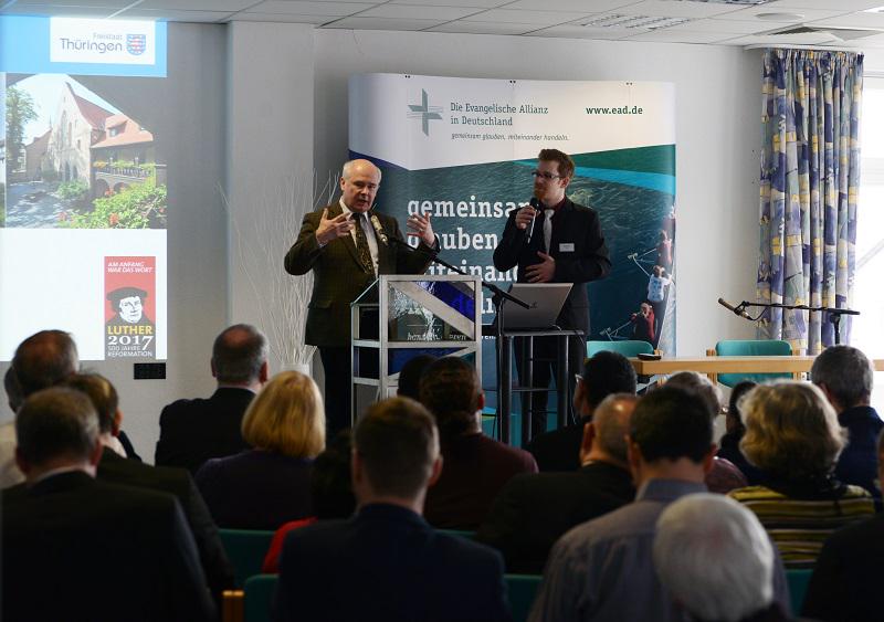 在一次欢迎午宴上,德国福音派联盟主席克哈特·韦特(Ekkehart Vetter)阐述了巴特布兰肯斯堡与宗教改革事件发生地的接近性。德国图林根地区政府改革代表(Representative for the Reformation of the regional government of Thuringia)托马斯·塞德尔博士(Dr. Thomas Seidel)分享了当地对宗教改革500周年的庆祝,以及该事件如何成为一次让人们重新参与教会的重要机会。他说,图林根地区现约有85%的居民没有委身于教会。