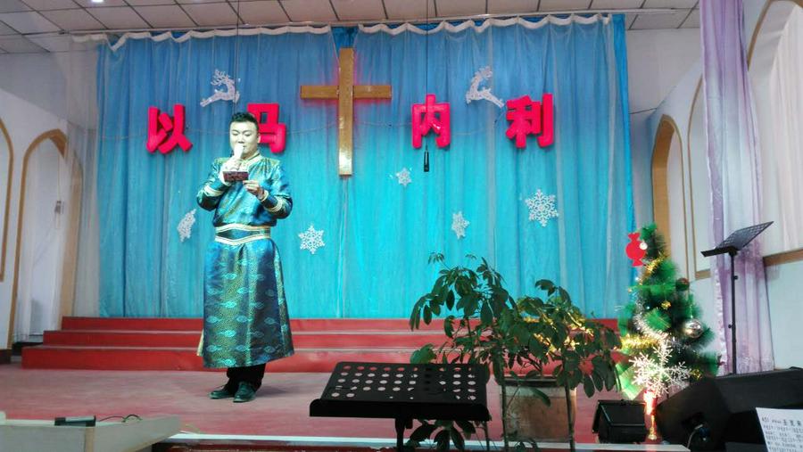 2017年4月16日,内蒙古鄂尔多斯东胜教会举办的复活节崇拜上,蒙古族团契的弟兄姊妹也上台,用诗歌向复活的主献上敬拜与赞美。