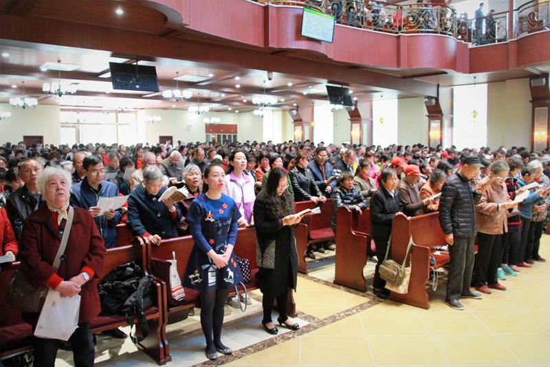 2017年4月16日上午8:30,南通第一城基督教堂复活节崇拜在市基督教协会副会长张培生牧师主礼下开始,有1000多名信徒参加。