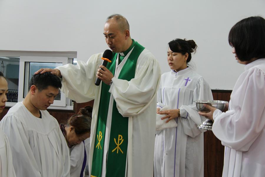 早晨7点,当灿烂的阳光洒下大地的时候,我们开始举行晨曦受洗礼拜,有五十五位慕道友接受了洗礼,归入耶稣基督的名下,成为天国的子民。他们经过了初信栽培学习,以及要道问答的考核,在复活节这一天早早来到教堂。他们穿着洁白的受洗圣服按着次序走到讲台,跪在上帝的面前,接受牧师的询问,承认并告白自己的信仰。接受洗礼的他们多有感动流泪,这是他们人生新的开始,决志跟随耶稣的开始。台下观礼的弟兄姐妹默默为这些肢体祷告。今天是庆祝耶稣复活的日子,我们也欢喜有这五十五位慕道友受洗归主,借着水的洗礼,表明他们决心跟随基督,与主联合。