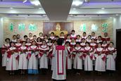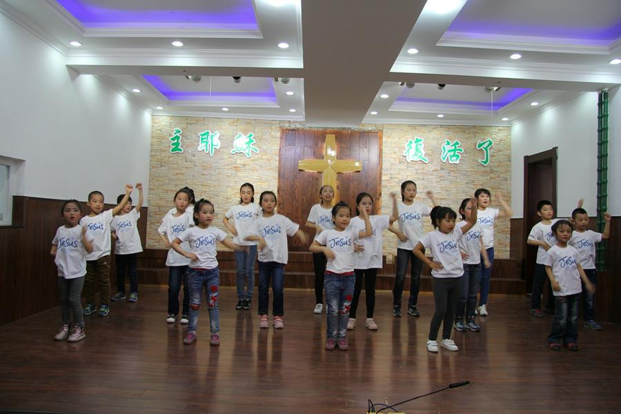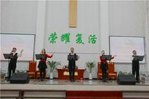接下来,在诗班美妙庄严的歌声中,复活节赞美会开始了。诗班献诗《高唱和散那》《平安》。歌声宛转悠扬,回荡在教堂,也回荡在弟兄姐妹的心间。愿歌声响彻天际,献给为我们复活的基督。赞美会中,各个聚会点弟兄姐妹献上合唱,主日学的孩子们献上舞蹈,服侍组、荣归班的肢体也为主献诗歌唱。每个人都心中喜乐:“主复活了,主得胜了。”