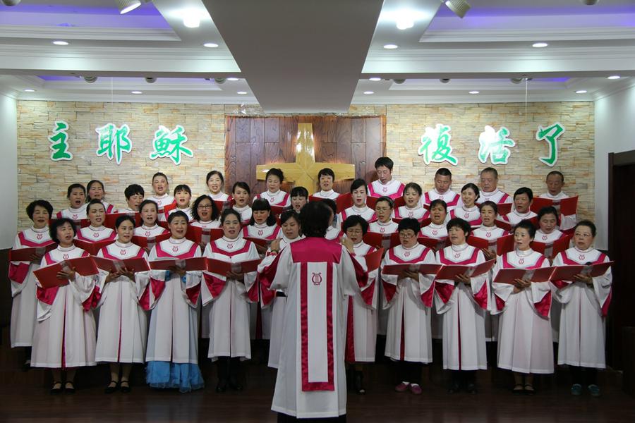 4月16日,吉林长春海口路教会举行复活节崇拜聚会,欢呼庆贺耶稣基督的复活。
