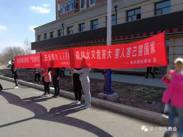 2017年4月22日,七台河市基督教金沙新区教会在主任牧师秦淑萍的带领下,举行了公益宣传活动。因为金沙新区这片土地农民比较多,而且四围都是森林,在春季火灾的高发期,我们进行了护林防火的宣传活动!不单是因为4月22日是世界地球日,而是想要把爱心融入社会、服务社会,去实践"施比受更有福"的圣经教训,做光做盐,荣神益人。