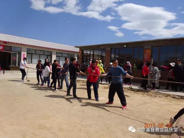2017年5月6日上午,北京基督教延庆堂与崇文堂联合举行“携手冬奥趣味运动会”。运动会在背倚青山的上辛庄村一位牧羊弟兄的场院进行。