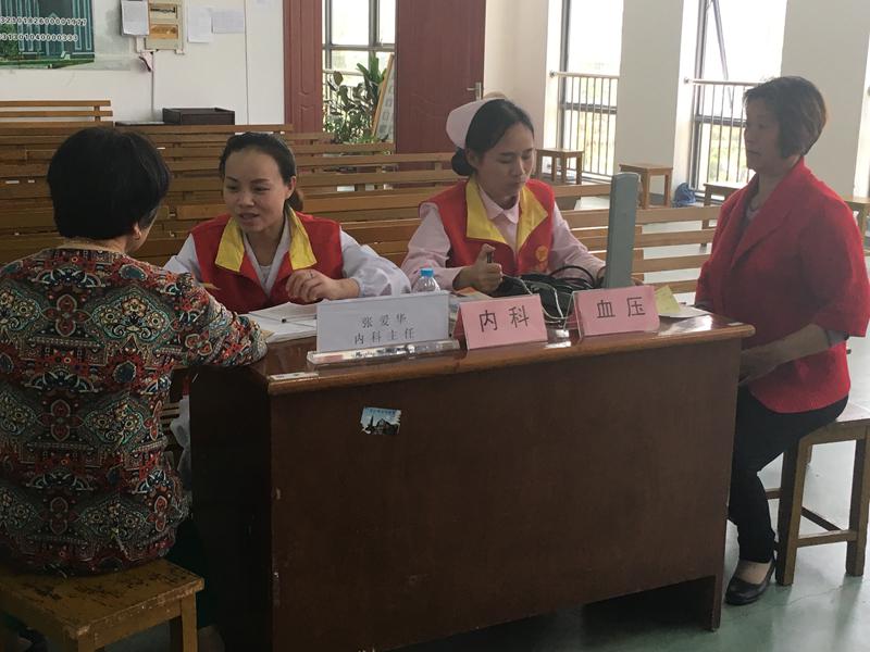 此次义诊共设内科、外科、妇科、骨伤科、影像科和理疗科。他们携带听诊器、血压机、小型治疗仪等常用医疗器械,为患者免费诊治、免费赠药、解疑答惑。本次义诊共接诊129人,其中34人经查患有不同程度的颈椎病,5人需要去医院复查B超确诊病情,28人测量了血糖,69人测量了骨密度,27人进行了理疗推拿。