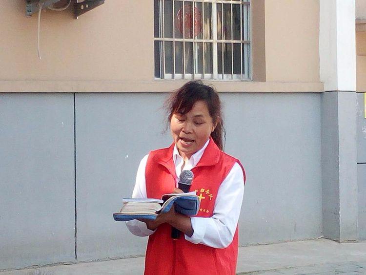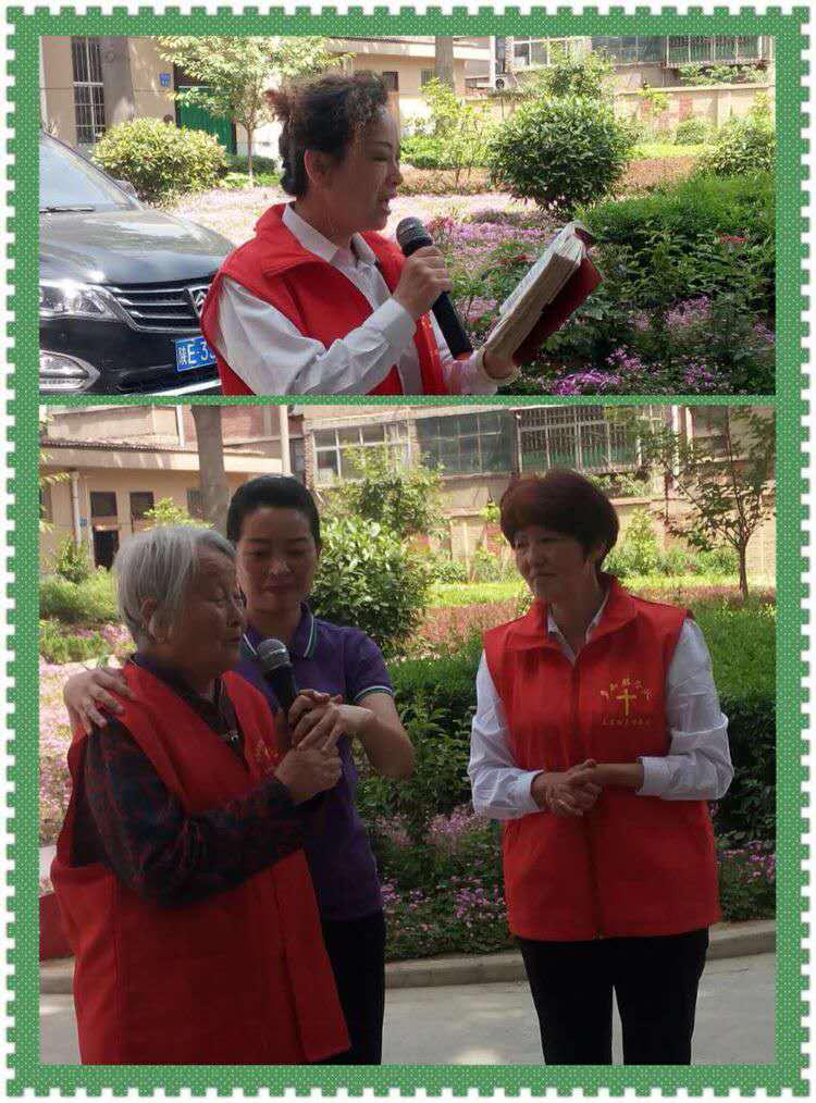 大家同心祷告,祈求上帝带领我们,让我们与他同工,做好今天的服侍!演出还未开始,队友们先将老人扶出房间、安排好座位,他们楼上楼下的跑动着,生怕没有用心、服务不周到。队长刘振玲姊妹宣布今天的活动内容。