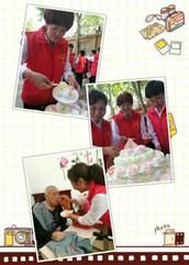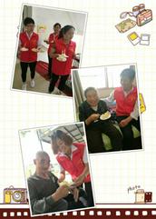 得知个别“寿星“”打针、有的老人不能下床未吃到蛋糕时,队友们在表演节目的空隙主动要求工作人员领路,将蛋糕分享给不能下楼的“寿星”及其他老人,并给寿星们送去生日祝福,用他们的话就是“要让每位老人吃上蛋糕,每位寿星的议程都不能少”;活动同时有的队友跟老人边聊天边传福音……敬老院的老人为主做见证!