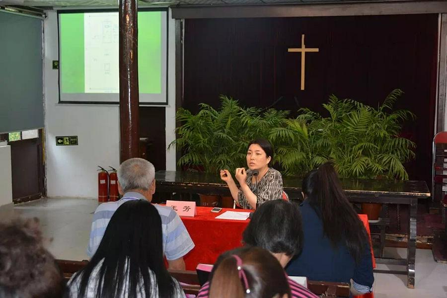 通州堂王泽慧牧师、彭永刚传道员、李立红会计分别与大家分享“档案归类”、“小组带领”、“财务管理”等方面信息。