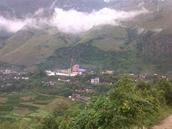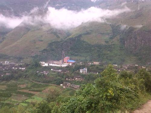 该圣经学校位于福贡县上帕镇的古泉村,那是一栋红墙的建筑,屹立在怒江边,四周绿树掩映。走进学校,有一块石头,四周堆积着浑圆的卵石,上面写着圣经学校的简介:昔日荒无人烟的泥潭(木尼玛)蒙神拣选此地成为他的圣山,一九八八年至一九九零年相继成立福贡县基督教两会,将其作为福贡县基督教两会的办公驻地和全县教牧培训基地。始建于一九九三年,学校占地面积834亩,其中蒙福堂在二零一三年六月再次修缮,经主内弟兄姐妹同心合意代祷和支持下,共投资约150万元左右,于二零一三年二月二十四日竣工并举行感恩庆典。今立碑以志神恩并所有弟兄姊妹的爱心。荣耀归于神!