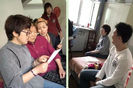 王弟兄的孩子王旭,由于孩子得了严重的忧郁症,一直不愿与外界交流。当探访人员见到王旭时,他却很高兴地接待了我们、并且耐心地听刘界昇弟兄的分享。每个弟兄姊妹拥抱了王旭,王旭也很高兴的和弟兄姊妹合影,欢喜的送我们离开。