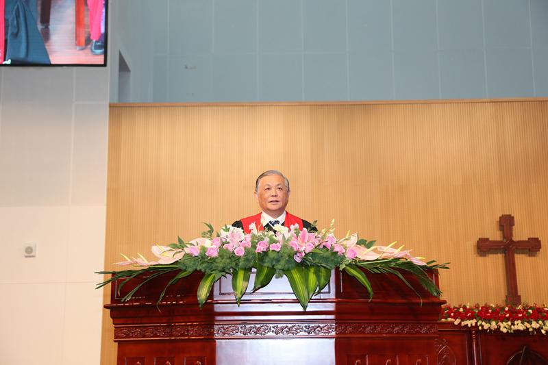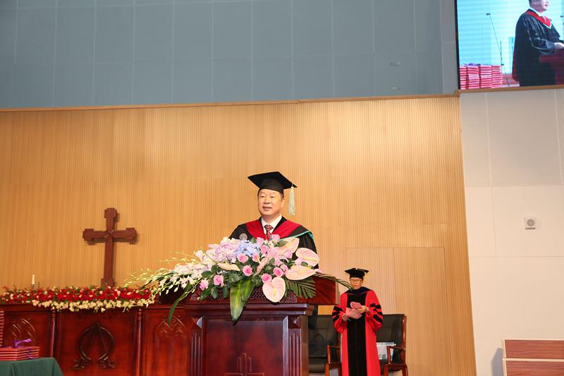 中国基督教两会主席、金陵协和神学院董事长傅先伟长老在劝勉中表示,不管走到哪里,矢志不渝的是神在当初和今天对于大家的呼召。他希望毕业生们能坚持独立自主自办教会的原则,不断推进基督教的中国化,明确基督教中国化的目标是“完成从基督教在中国向中国基督教的转变”,“我希望,同学们今后在工场的事奉中,能够立足于中国社会与文化的处境,在牧养信徒、办好教会的同时,积极进行神学思考,参与并在基督教中国化方面有所建树。”他还劝勉毕业生要积极学习、善于学习,培养“守正笃实、久久为功”的精神;尽心尽力、以身作则,为教会树立良好的形象、为社会作出佳美的见证,不断提高牧养水平,并保重身体。此外,傅长老还希望毕业生们能不断提高法治观念,教导信徒自觉遵守国家法律法规,以教规来办教。最后,他引用保罗的话说:“不可叫人小看你年轻,总要在言语、行为、爱心、信心、清洁上,都做信徒的榜样”。