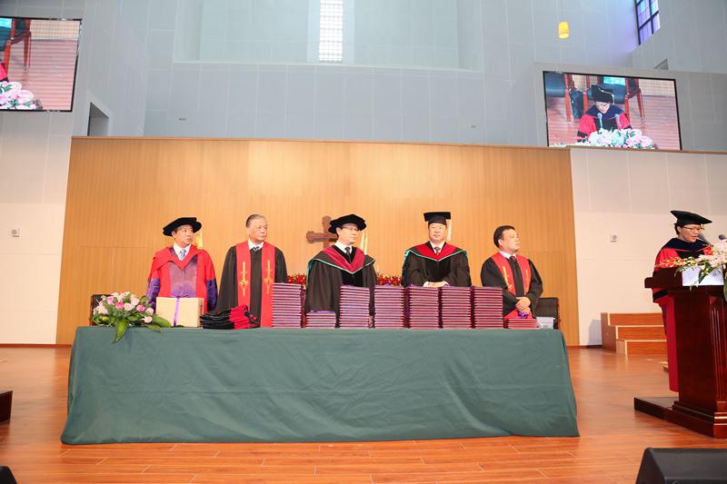 6月30日,金陵协和神学院于该院新教堂举办了2017届毕业崇拜暨毕业典礼。本届共有109位学生获准毕业,其中本科92人,研究科17人。中共中央统战部二局王志刚副局长,基督教全国两会有关领导,美国富勒神学院院长兰伯顿博士,江苏省、南京市有关部门领导和嘉宾等出席了毕业典礼。典礼由金陵协和神学院常务副院长陈逸鲁牧师主持,陈彬副院长献上祷告,吕德志牧师以《整装待发》为题证道,林曼红教务长主持颁发证书和学位授予仪式,高峰院长行差遣礼,傅先伟长老对毕业生进行劝勉。