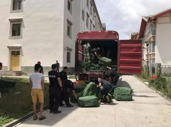 8月11日,在爱德救灾伙伴中国紧急救援汉中指南针分队、陕西雷霆应急救援队、陕西曙光救援队和贵州蓝豹救援队、凉山蓝豹救援队组成的联合救援行动队的配合下,爱德基金会救援队员前往漳扎镇开展物资分发和帐篷安装工作。