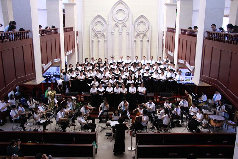 2017年8月19日上午,应苏州市基督教两会邀请,香港城欣乐团的弟兄姊妹来到昆山基督教周庄圣恩堂演出,昆山教会天使合唱团和各堂所诗班成员约360人观看演出。