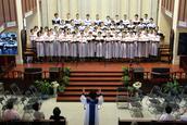 主要节目有:钢管:《The Saints’ Hallelujah》、合唱:《齐歌颂真神》、《我敬拜你》、《在主爱中合一》、《Gloria》《黑夜已逝》、《我献赞美》、《在这磐石上》、《When the Saints go…》,长笛独奏:《His Eye is on the Sparrow》,手铃组演出:《主赐平安》、《天父领我》,小提琴二重奏:《Near to the Heart of God》,男中音独唱:《主领我路》。中间有张慕皑牧师短片分享等。通过演出,让我们感受到圣乐是如此地神圣、庄严和美妙,激励在场的每一位诗班成员要不断地学习和追求,更好地用音乐来侍奉上帝。