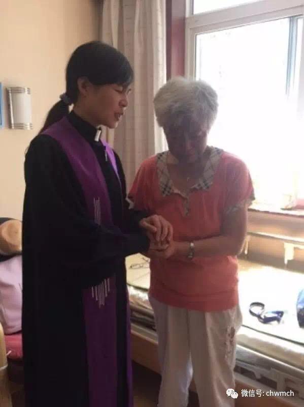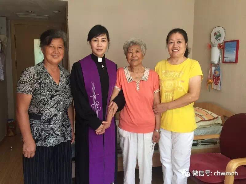 2017年8月17日,北京崇文门教堂爱心组义工在韩玉芳牧师带领下来到朝阳区寸草春晖老人护理院,看望刘淑华姊妹。