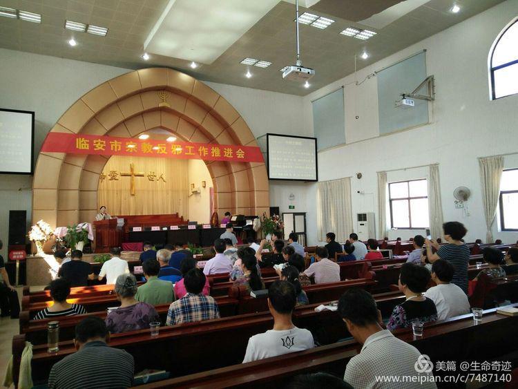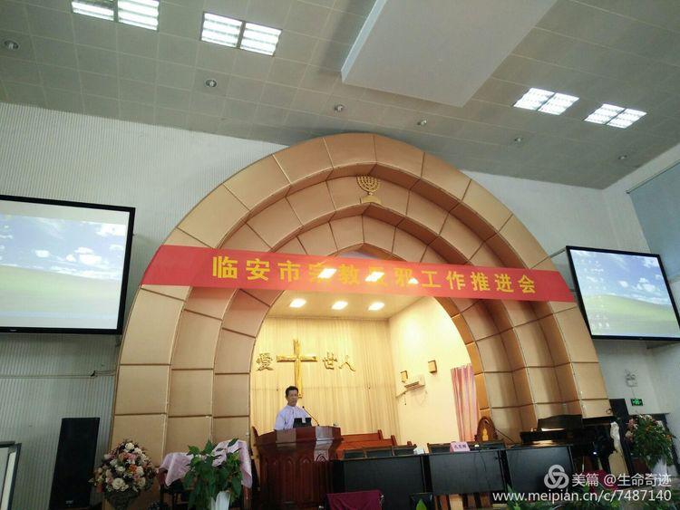 浙江临安市基督教两会为进一步推动“反邪教”宣传警示教育向基层延伸,扎实开展反邪工作推进会,切实加强临安市各镇、街道干部和堂点负责人、教牧同工有效的识别邪教、自觉抵制异端邪教的能力,于2017年8月22日由临安市民宗局协办、临安市基督教两会主办,举行了反邪教推进会。来自临安十八个镇、街道的干部和临安市基督教71个堂点的负责人和天主教负责人及教牧同工在福音堂教会参加本次会议。