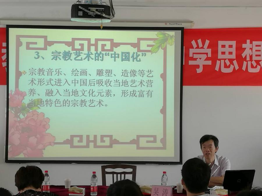 会议由市三自爱国会戴亚萍主席主持,邀请无锡市民政局吴涛局长以“引导宗教“中国化”路径的思考与探索”为主题,从宗教“中国化”的基本内涵、重要意义、衡量标准、实践路径等四个方面阐述了宗教“中国化”的重要性和必要性。