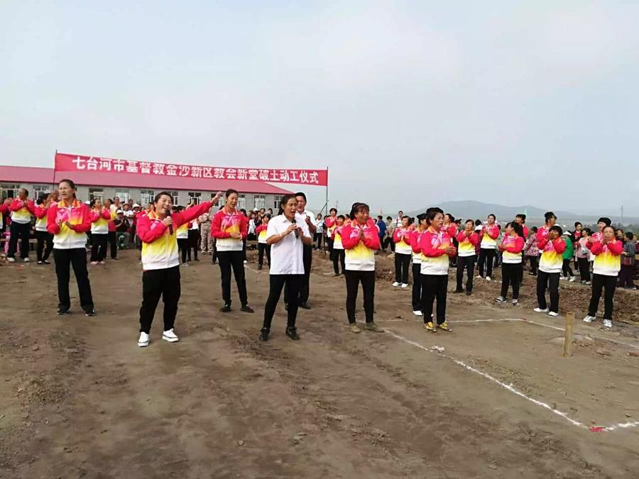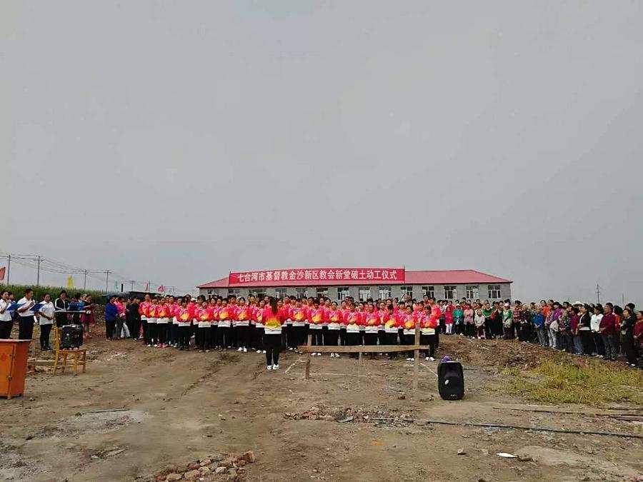 8月24日上午7:00-9:00,黑龙江七台河市金沙新区基督教会举办了新堂建设破土动工仪式,教会中的弟兄姐妹400人左右一同赞美、祷告、领受神的话语、行奉献礼。该教会曾为了建堂捡了20多万块旧砖头。