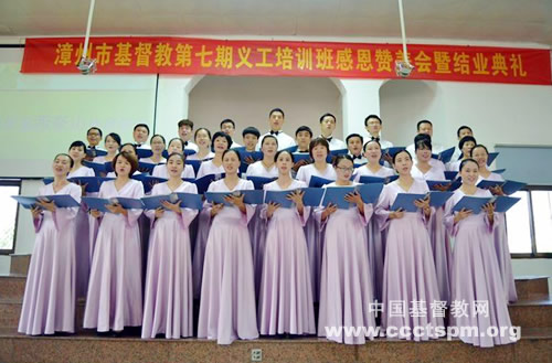 2017年8月25日上午,福建省漳州市基督教两会在漳浦县车仔教堂举行漳州市基督教第七期义工培训班结业典礼及感恩赞美会,此次培训班学员44位,学完规定的全部课程,经考试有42位成绩合格,准予结业。