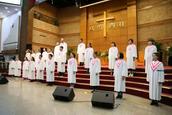 哈利路亚教会的各个诗班及团契的弟兄姊妹在台上向上帝献上感恩的祭物,那是他们在用心灵来诠释承载着上帝生命之道的奇妙,全体会众在这十七周年的特别崇拜中向至高上帝献上了美好的馨香之祭。愿上帝的爱激励着我们这一代人,让我们完成祂对我们的托付和使命!愿上帝得到祂当得的荣耀!