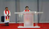 早7时40分,全院师生在庄严的国歌声中举行了升旗仪式。之后,由学院常务副院长李美兰牧师主持开学崇拜暨开学典礼。院诗班以一曲赞美诗歌《愿我心颂扬》充分表达了对伟大创造者的称颂,对荣耀全能者的敬拜。